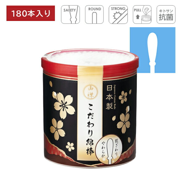 山洋 こだわり綿棒 180本 掃除 耳かき 綿棒 耳垢 安心設計 柔らかい綿 強い紙軸 大容量 日本製 SANYO 山洋 ピップ PIP