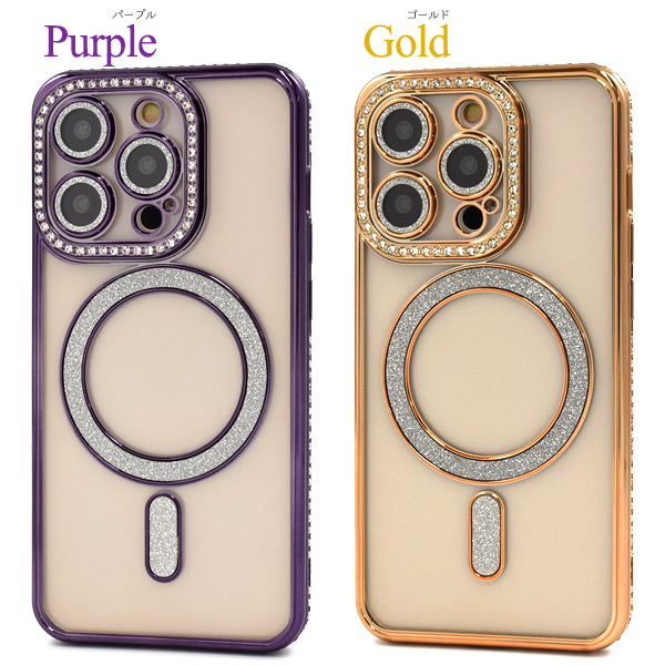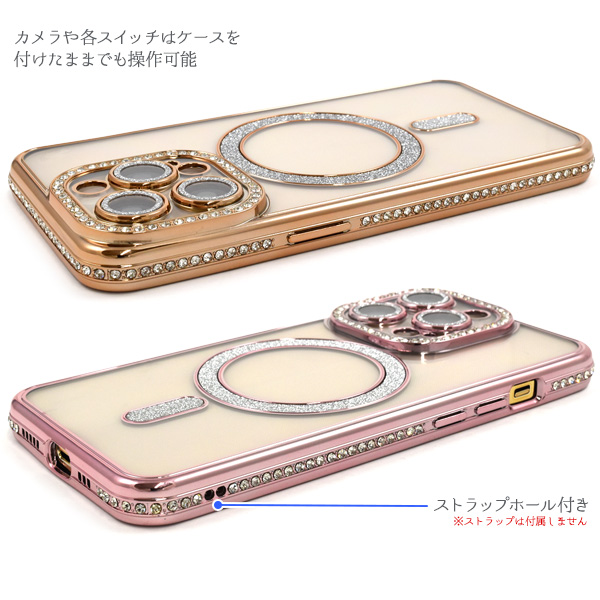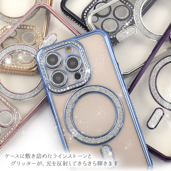 スマホケース iPhone14Pro用 MagSafe対応 メタリックカラー ラインストーンケース きらきら oおしゃれ iPhoneカバー 装着簡単 背面カバー 背面保護カバー スマホカバー シンプル マグセーフ対応 携帯ケース ケータイケース iPhoneケース ベーシック カジュアル バックカバー