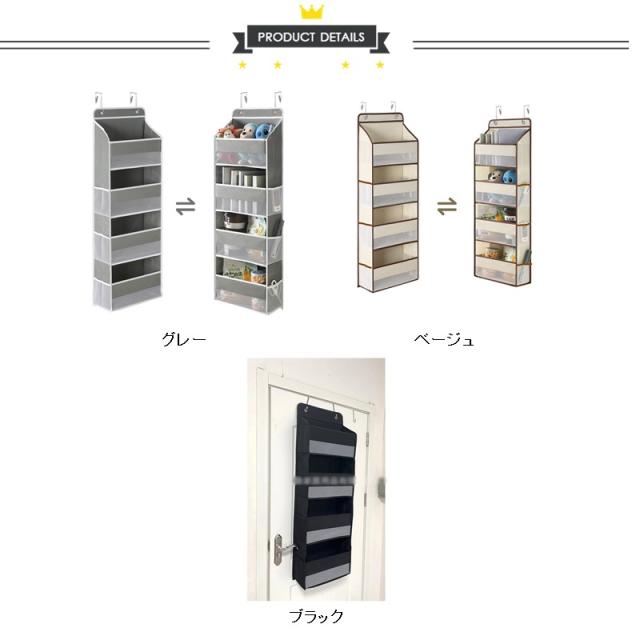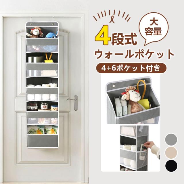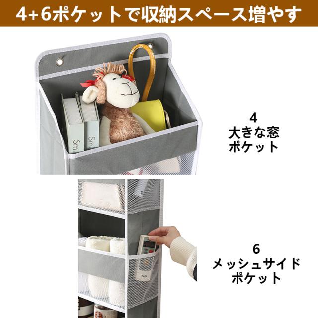 4+6ポケットで収納スペース増やす グレー ベージュ 黒 ブラック ハンギング 片付け 省ス ドア掛け収納式ポケット 布 不織布 中身 ハンガー マチ付き