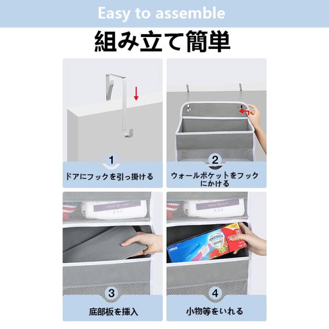 ウォールポケット 収納 吊り下げ ドア掛け 大容量 縦 側ポケット付き ハンガー 壁掛けポケット 北欧 不織布 マチ付き 雑貨 小物入れ 透明窓 中身
