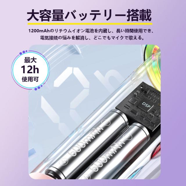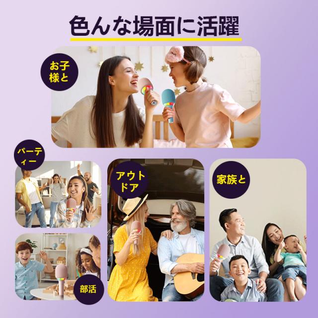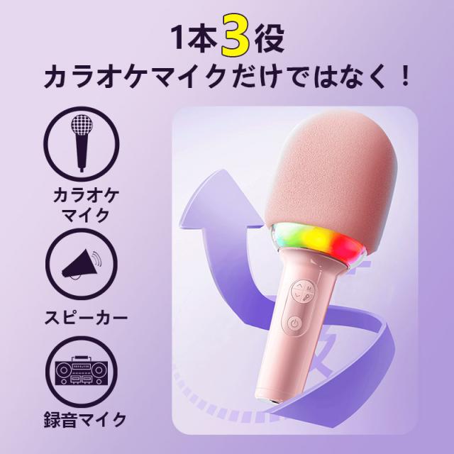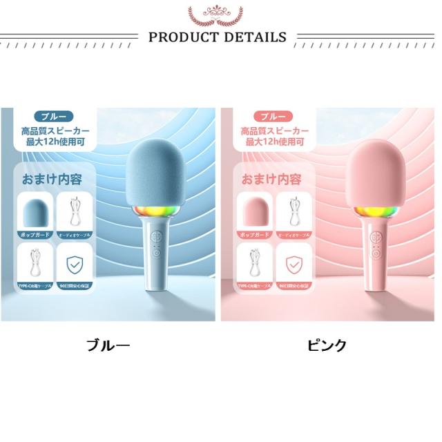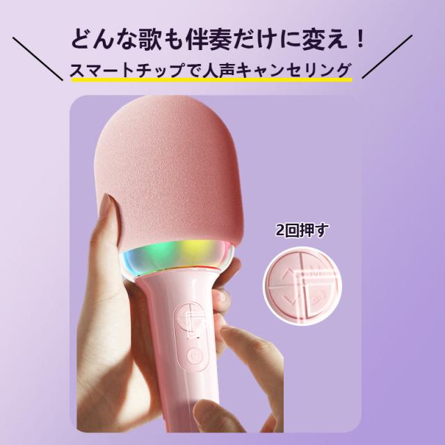 カラオケマイク bluetooth ワイヤレスマイク 家庭用 高音質 スピーカー内蔵 ノイズキャンセリング LEDライト付き Bluetooth