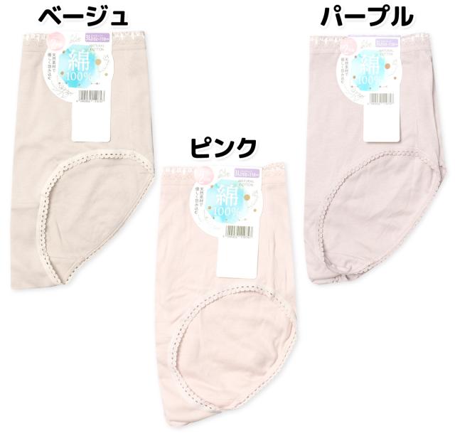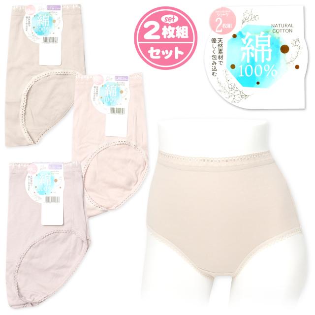 【送料無料】【大きいサイズ】2枚組セット 婦人 レディース ショーツ 本体綿100% スムス 天然素材 無地 レース 肌着 下着 インナー 3L 4L 5L yg-2452【メール便対応】