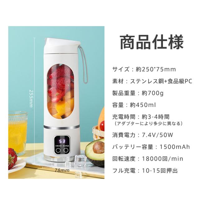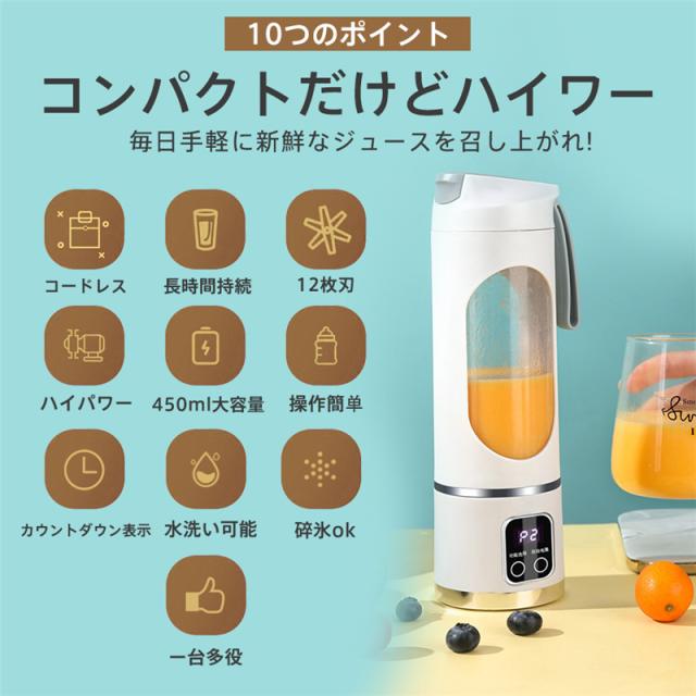 ミキサー ジューサー 丸洗い可 携帯ジューサー ハンドミキサー コードレス 洗いやすい USB充電式 持ち運び便利 氷も砕ける ブ
