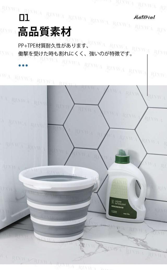 ●折りたたむことで、小スペースで収納できる便利な折りたたみバケツです。