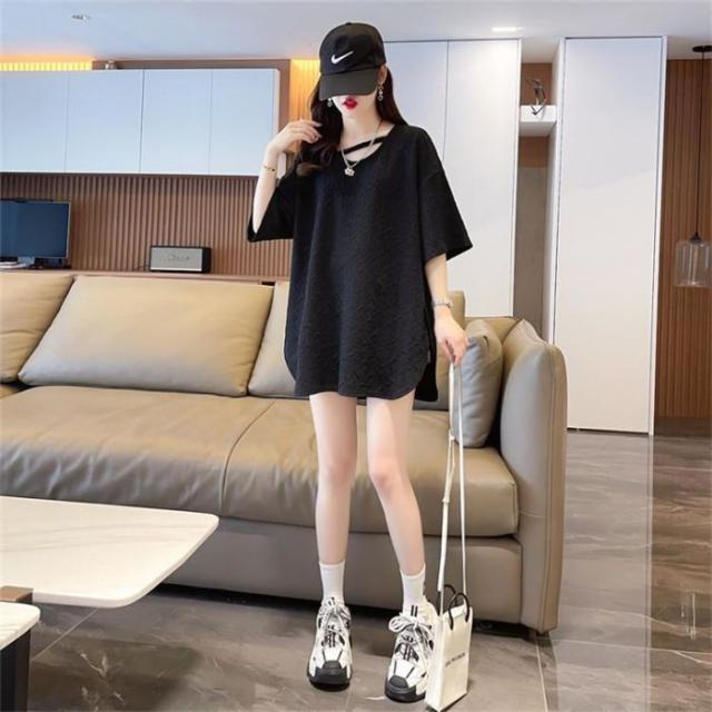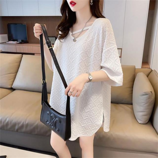 Tシャツ レディース カットソー トップス プルオーバー 半袖 おしゃれ vネック ゆるっと 立体感 無地 かわいい 2024 新作 新品 ティーシャツ
