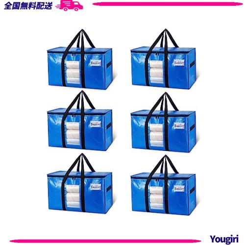 【100L大容量、収納力抜群】:抜群な特大引越しバッグの寸法:70cm X 35cm X 42cm、6パック。 両端のジッパーと中央に大きな開口部があるため、衣類、おもちゃ、靴、タオル、必需品、枕、寝具、シーツ、毛布、洗濯物、クリスマス飾りなどを簡単に収納できます。