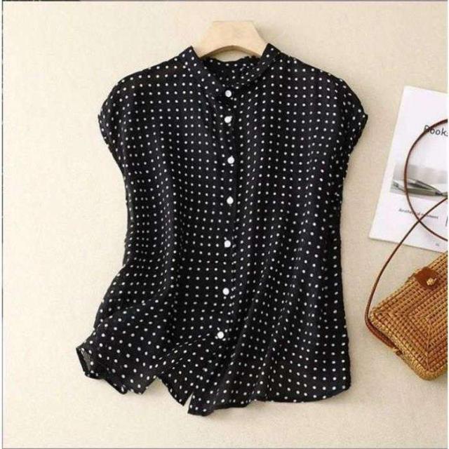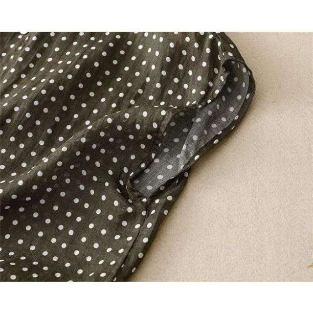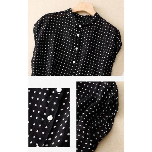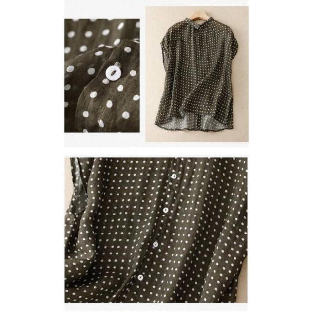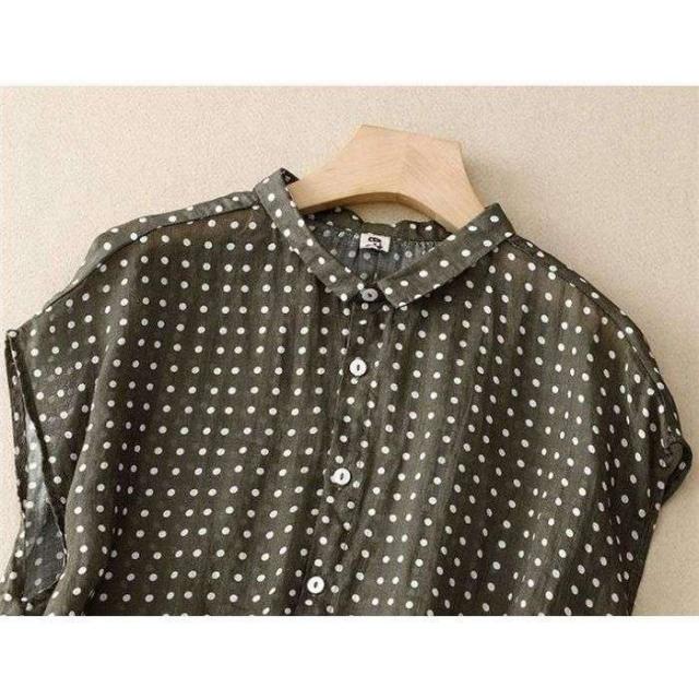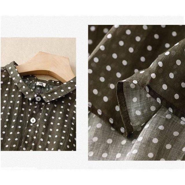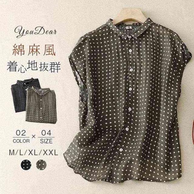 ブラウス シャツ 夏 半袖 レディース ガーゼ ブラウス レディース ブラック ドット柄 コットンリネン 通気性 シンプル 折り襟 大きいサイズ トップス
