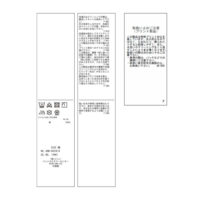 ■お手入:洗濯機(極弱)・漂白、タンブル乾燥、ドライクリーニング禁止