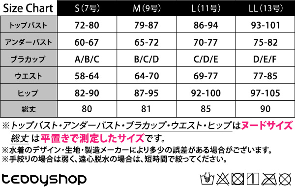 ※トップバスト・アンダーバスト・ブラカップ・ウエスト・ヒップはヌードサイズ、