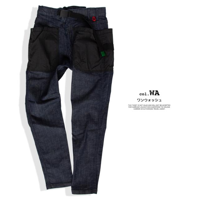 「 H.A.K.U MOUNTAIN SUPPLY × NANGA ハク マウンテン サプライ × ナンガ 」 LOW CLOTCH SKINNY2 ロークロッチ スキニー 2(デニム) HKS114 /HK-S114 / デニムパンツ ジーンズ スキニーパンツ サルエル ストレッチ 難燃素材 ISKO アウトドア ボトムス メンズ