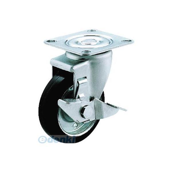 ED1085282 ユーエイキャスター [SJ-100WS] プレート式 自在 キャスター ゴム 車輪径100mm ストッパー付き Jタイプ SJ−S型 取付寸法71×7