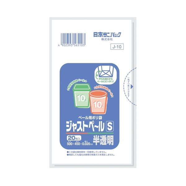 4902393565103 J−10ジャストペールS半透明 20枚 半透明 ペール用ポリ袋 Jー10