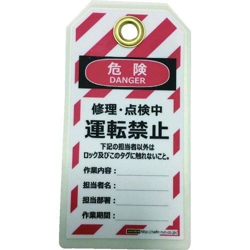 セーフラン J2062 タグアウト用吊タグ PETラミネート 150×80mm 運転禁止