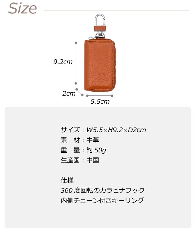 ![]() ![]() ![]() ![]() ![]() ・Melody メロディー レザーキーケース おうちの鍵、車の鍵、スマートキーにおしゃれなキーケース。 カラーによってキュート、シンプル、クールとその印象が変わります。 男女兼用でお使い頂けるシンプルなデザイン、手に収まるコンパクトなサイズ感が魅力。360度回転するカラビナ付きでバッグやベルトループなどに取り付けが可能です。 上質な本革を使用しているので型崩れしにくい、しっかりとした作りになっています。 プレゼントにもおすすめです。