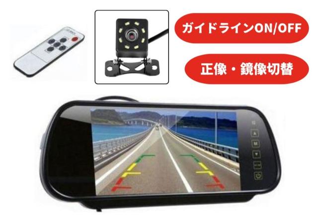 バックカメラ 7インチ ルームミラーモニター セット BK008 夜間 防水 車載モニター LED 12V車 遠隔操作 リモコン付き
