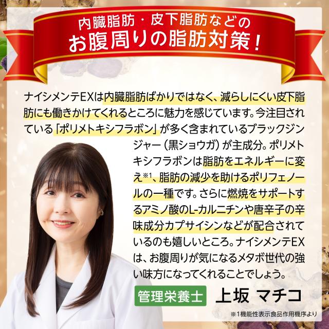 ダイエットサプリ お腹の脂肪 皮下脂肪 内臓脂肪を減らす ナイシメンテEX ダイエット [機能性表示食品]ブラックジンジャー サプリ 60粒(30日分) カルニチン カプサイシン 日本製 送料無料