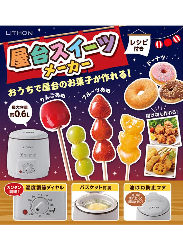 フライヤー 屋台スイーツメーカー 【P3倍最終日】 タンフル 温度調節 網付き 油はね防止蓋付き 一人 家庭用 おひとりフライヤー 卓上 電気 コンパクト