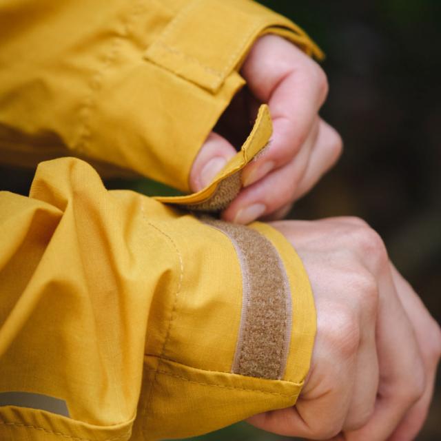 袖口にマジックテープが付属。袖口幅の調節が可能です。タイトにすることで風の侵入を防いだり、ずり落ちを防止することができます。