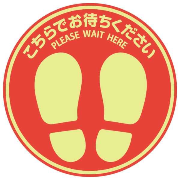ヒサゴ 4902668651999 フロア誘導シール 屋外用 こちらでお待ちください 丸 大 レッド