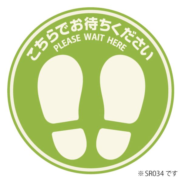 ヒサゴ 4902668652002 フロア誘導シール 屋外用 こちらでお待ちください 丸 小 グリーン