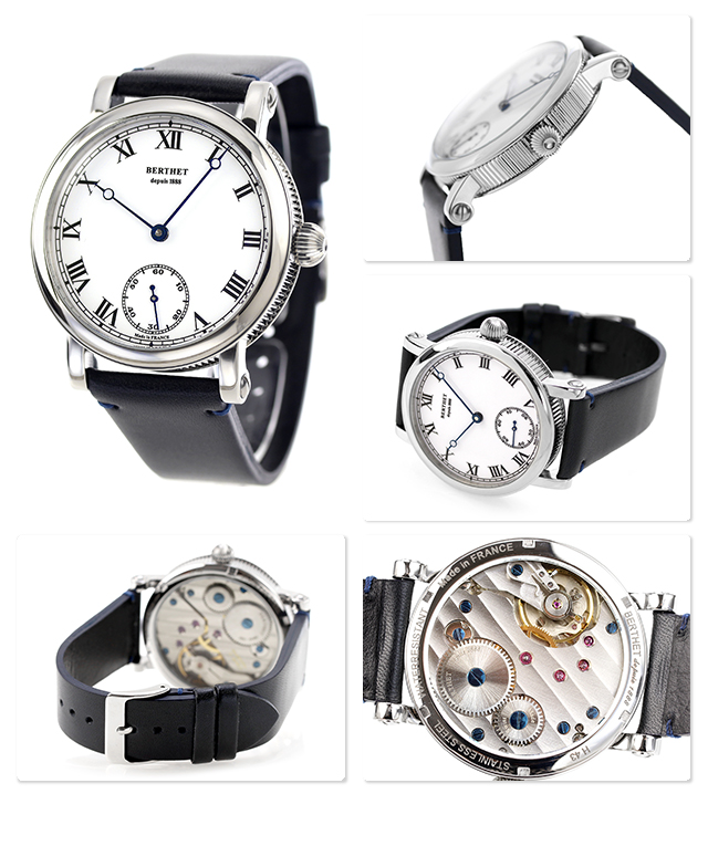ベルテ ロワイヤル 手巻き 腕時計 ブランド メンズ BERTHET BR.RYL.43.WH.S.L アナログ ホワイト ダークネイビー 白 フランス製