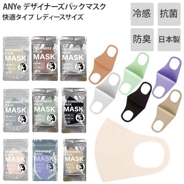 ANYe エニー デザイナーズパック マスク 快適タイプ レディース 女性用 冷感 抗菌 防臭 UVカット 日本製 1枚入 エニーマスク ANDM01-L