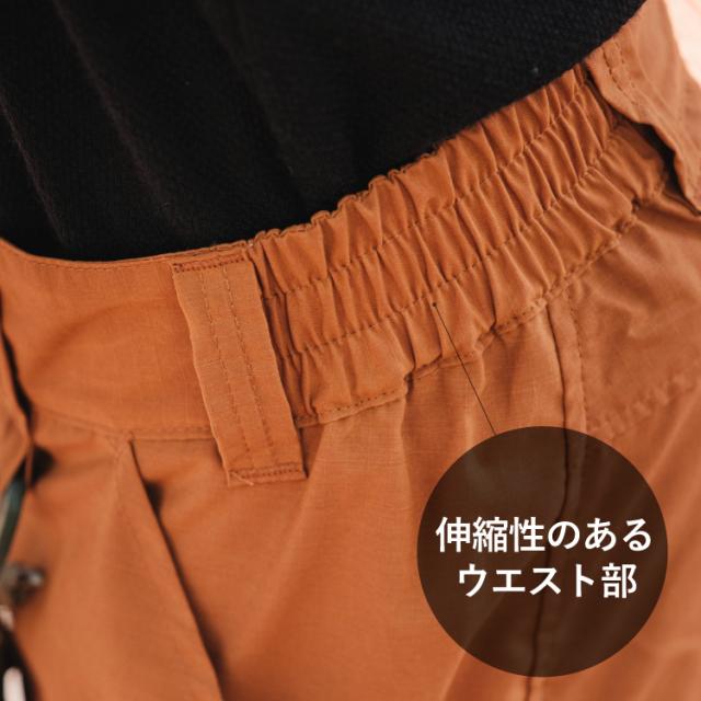 ウエストの両サイドにはゴムが入っており、伸縮性のあるデザイン。ストレスなくフィットします。
