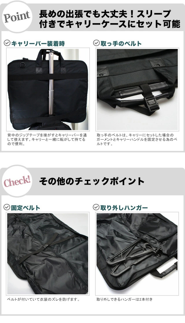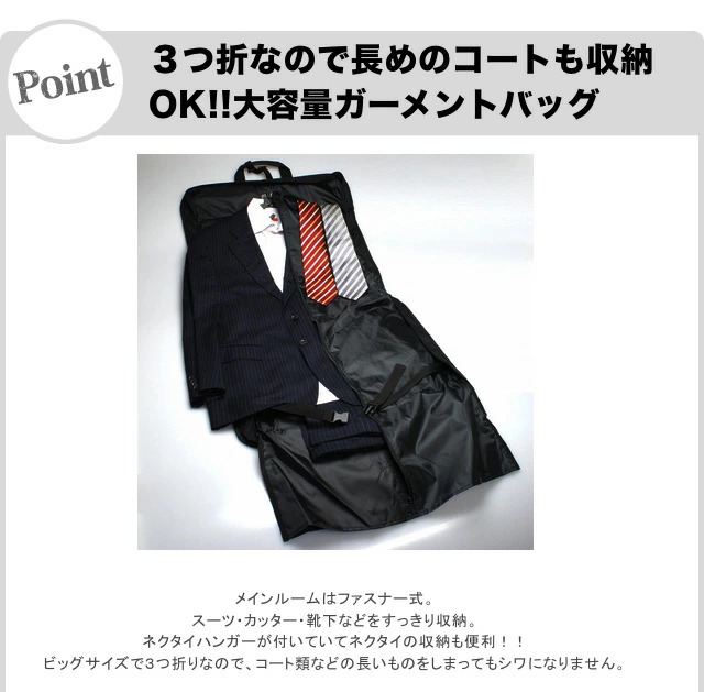 ■その他:大容量 多機能 ハンガー ポケット 衣装 ドレス スーツ 大きめ 大きい 大型 黒 ブラック 三つ折り 三つ折れ 2way