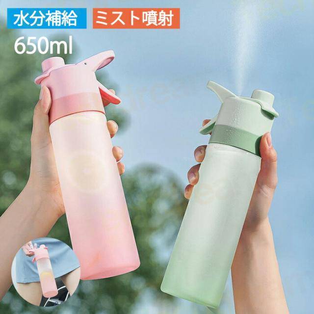ドリンクミスト 水筒 650ml キッズ ミスト機能付ドリンクボトル キャップ付き ミスト噴射 スプレー ボトル グラデーション 冷水筒 ウォーターボトル 携帯便利 子供 大容量 軽量 直飲み 女の子 おしゃれ 大人 夏 アウトドア スポーツボトル 水分補給 暑さ対策 熱中対策