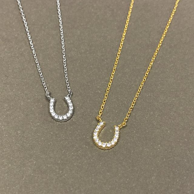 送料無料 ミニ馬蹄ジルコニアネックレス ホースシュー U形 ペンダント レディース シルバー ゴールド 幸運 干支 午年 キュービックジルコニア