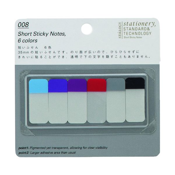●6色入のひらひらしにくい、見出しに便利なフィルム素材のふせんです。