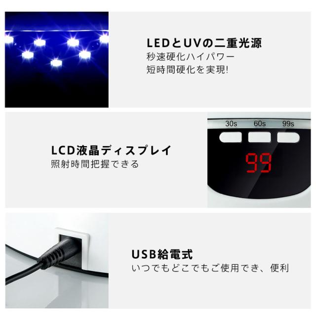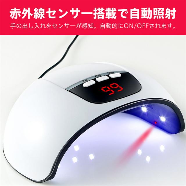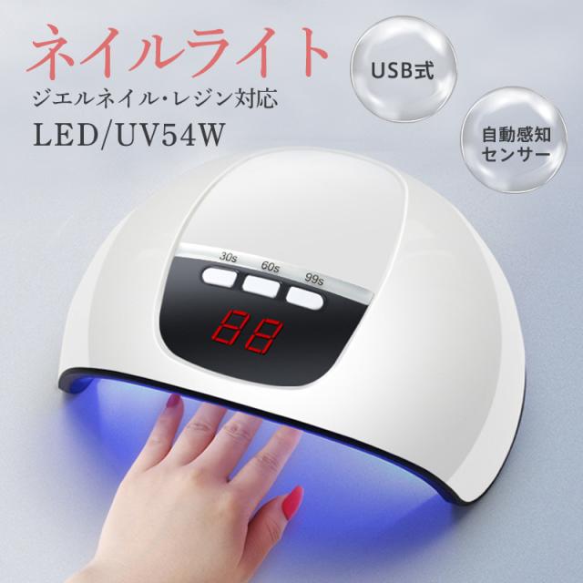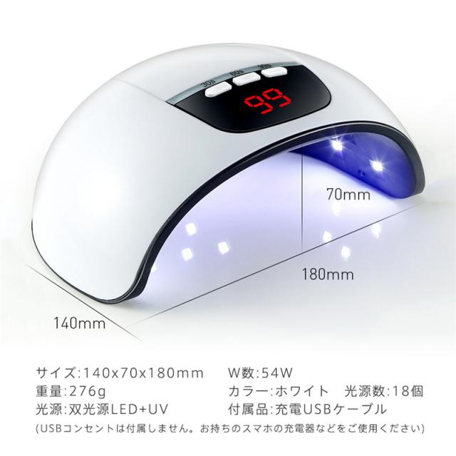メーカー希望小売価格: 3,980円ネイルライト ジェルネイル UV LED 54w 速乾 秒速硬化 強力照射 ローヒート USB給電式 ハイパワー 人感 タイマー レジン UVライト 日本語説明書付き