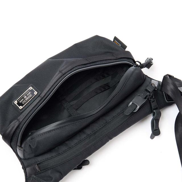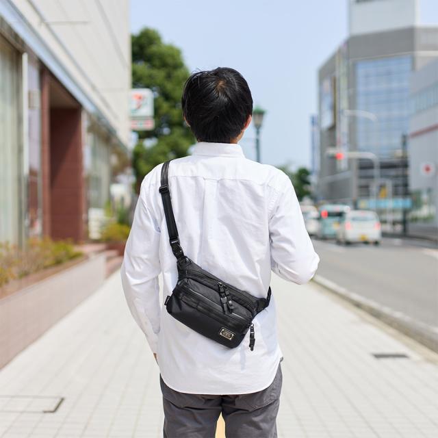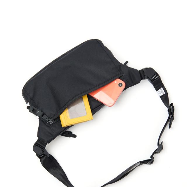 AS2OVを代表するDOBBYシリーズのファニーパック。ミニマルサイズですが、AS2OVらしい機能性を詰め込んでいます。本体が湾曲しており、身体にフィットする設計です。