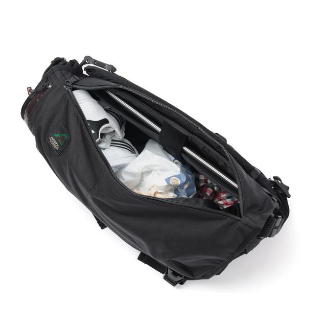 防水素材はもちろん、大きなフラップを開くことなくメイン収納にアクセスできるように配置されたジッパーや、左右どちらの肩にもかけられるようにショルダーストラップの付け替えが可能になっていたり、ユーザーにとって嬉しいギミックが盛り込まれています。