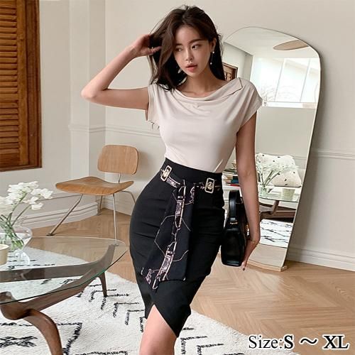 スカーフベルトスカートがアクセントのセットアップ(キャバドレス・CABARETDRESS)。