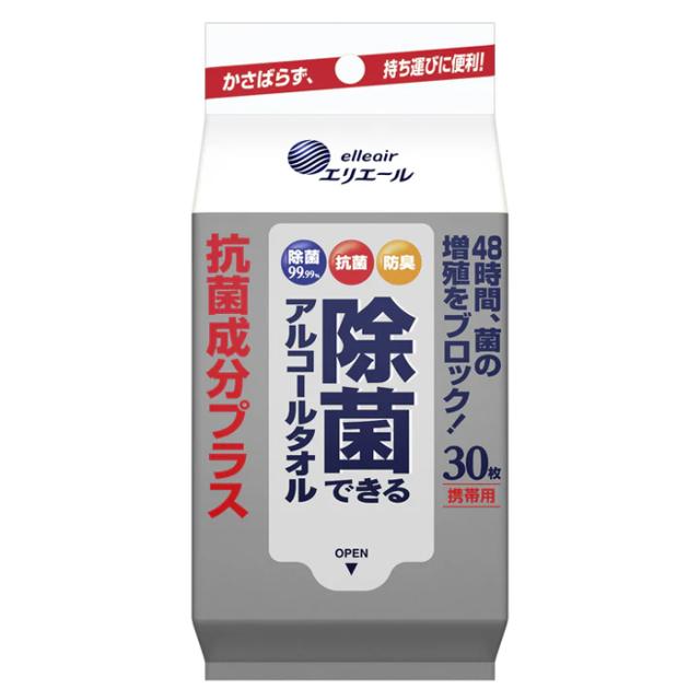 [大王製紙]エリエール 除菌できるアルコールタオル 抗菌成分プラス 携帯用 30枚入り(アルコールティッシュ ウェットティッシュ 除菌)