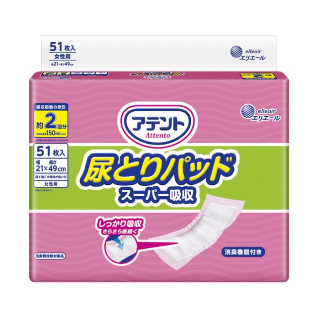 [大王製紙]エリエール アテント 尿とりパッド スーパー吸収 女性用 51枚入り(約2回分 テープタイプ用 消臭機能 さらさら感)