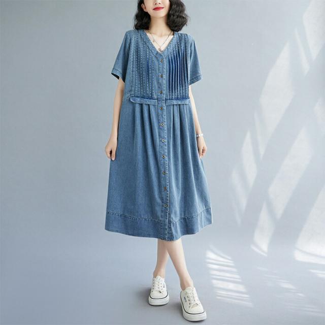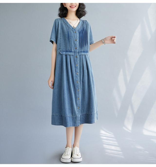 デニムワンピース レディース ロングワンピース 夏コーデ 50代 40代 30代 20代 夏 女性 服装 フレアスカート おしゃれ ママコーデ 旅行 お出かけ プレゼント ギフト