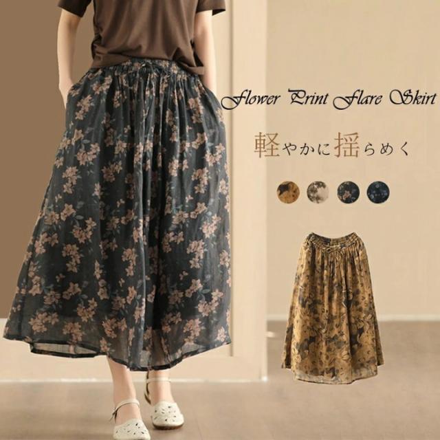スカート ロング 夏 ロングスカート 花柄レディース きれいめ 総柄 30代 40代 50代 60代 上品 Aラインスカート お呼ばれ 同窓会 デート お出かけ コーデ かわいい