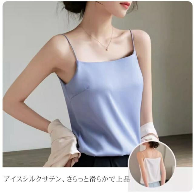 カップ付きタンクキャミ ブラトップ キャミソール サテン 下着 インナー サテンキャミソール レディース ブラ不要 おしゃれ 光沢 立体カップ シルクタッチ オフィス セクシー