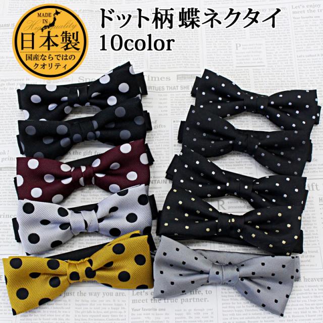 送料無料 日本製 水玉 ドット 蝶ネクタイ ボウタイ メンズ レディース 男女兼用 結婚式 シンプル おしゃれ ポイント消化 ゆうパケ