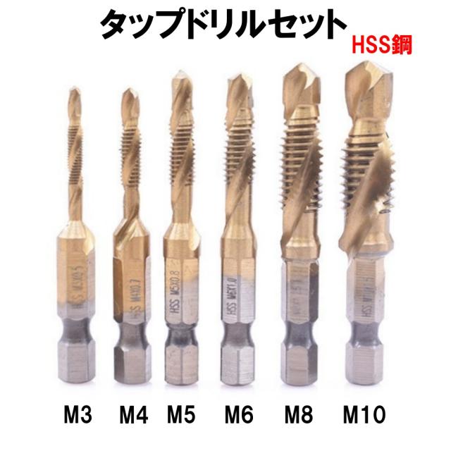 ドリルビットセット タップドリルセット 6本組 チタン 穴あけ 六角軸 タッピング 面取りタップ ドリルタップ ドリルビット タップ ドリル ビット 六角 木工