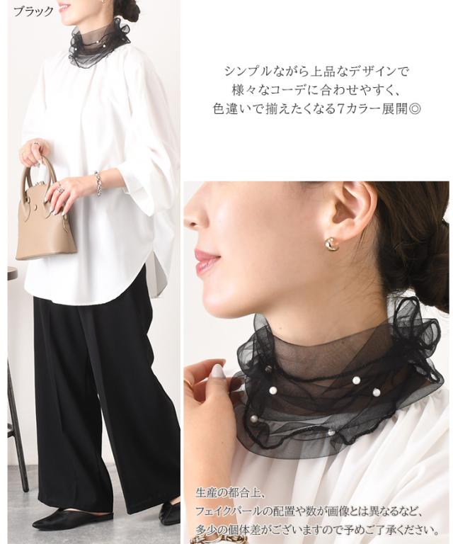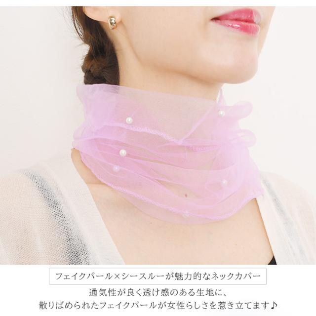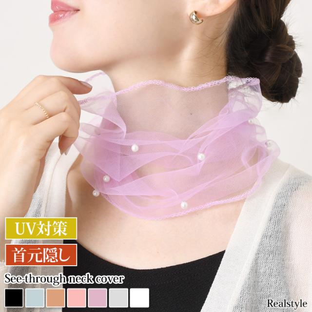 新作 ネックカバー 夏用 UV つけ襟 付け衿 フェイクパール 真珠 おしゃれ 紫外線対策 日焼け タートルネック 薄手 シアー 首 シワ隠し