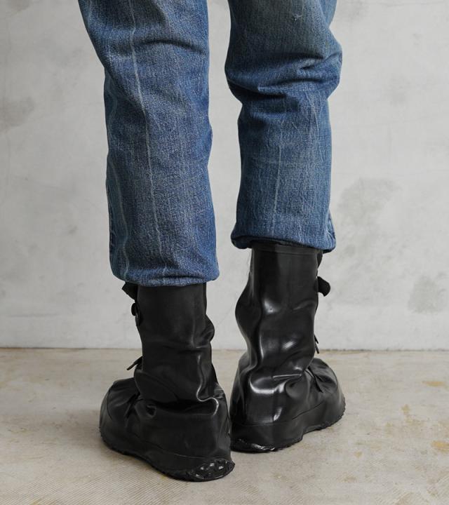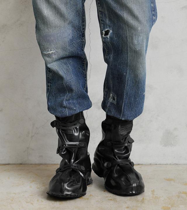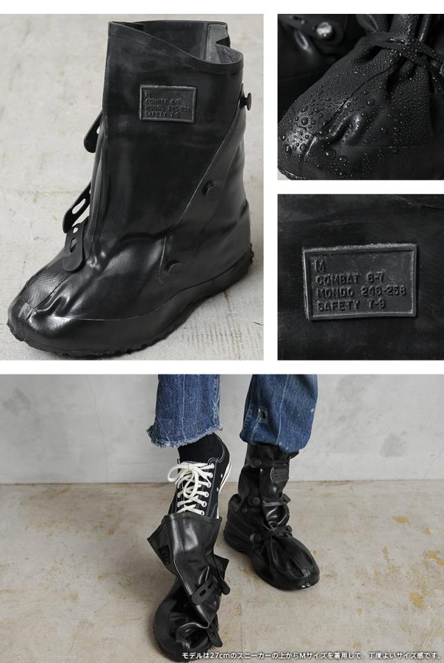 英国陸軍から放出のPVC製の防護靴が登場。静電気防止機能を備え、完全防水のオーバーシューズです。 雨、雪、沼地、汚染された地域などの厳しい状況下で使用することを目的として作られています。丈夫で柔らかく機密性が高いPVC製。シューズカバーとして、実際の靴を中に入れてサイドのシリコン製の調整バンドでフィット感を高めることができます。日常生活では見ることのない、ミリタリーならではの機能性と無骨な雰囲気が魅力的。 靴のままさっと履くことができるレインブーツとしてや、災害などの緊急時にも備えておきたいおススメのアイテムです。