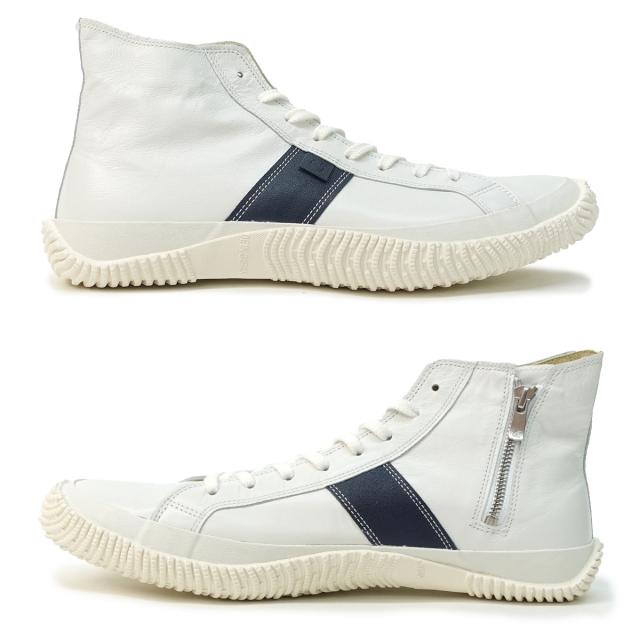 スピングル SPINGLE スニーカー メンズ レディース ハイカット SP-443 ホワイト/ネイビー スピングルムーブ カンガルーレザー 日本製