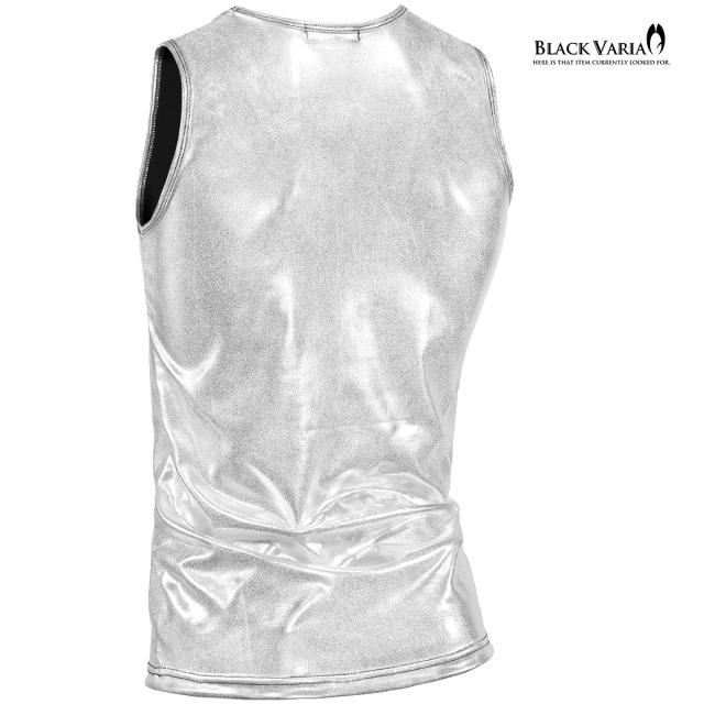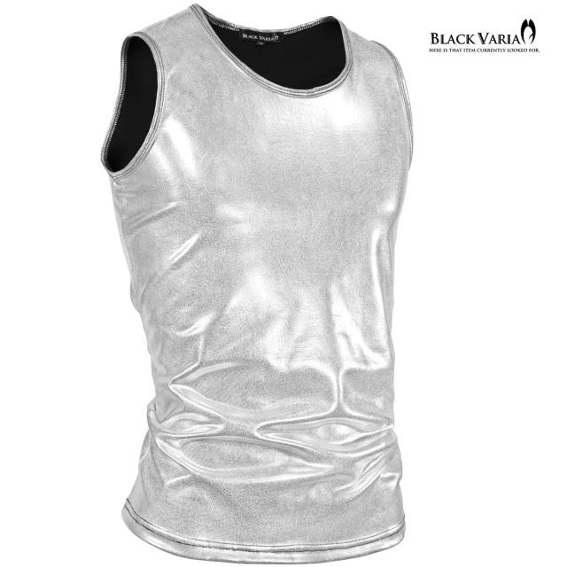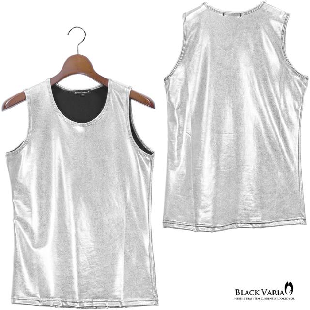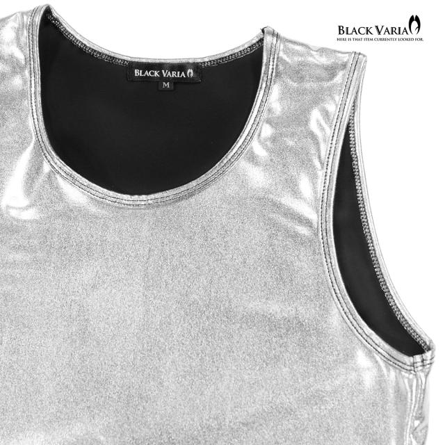 メール便可/1枚まで タンクトップ 光沢 メタリック 箔 メンズ 日本製 ストレッチ 細身 スリム ファッション おしゃれ(シルバー銀) 233160