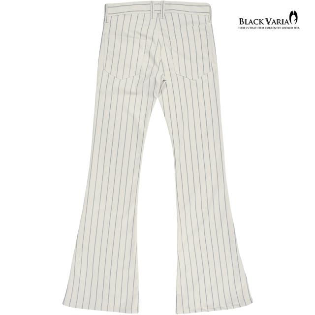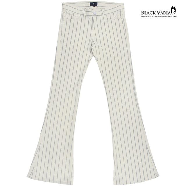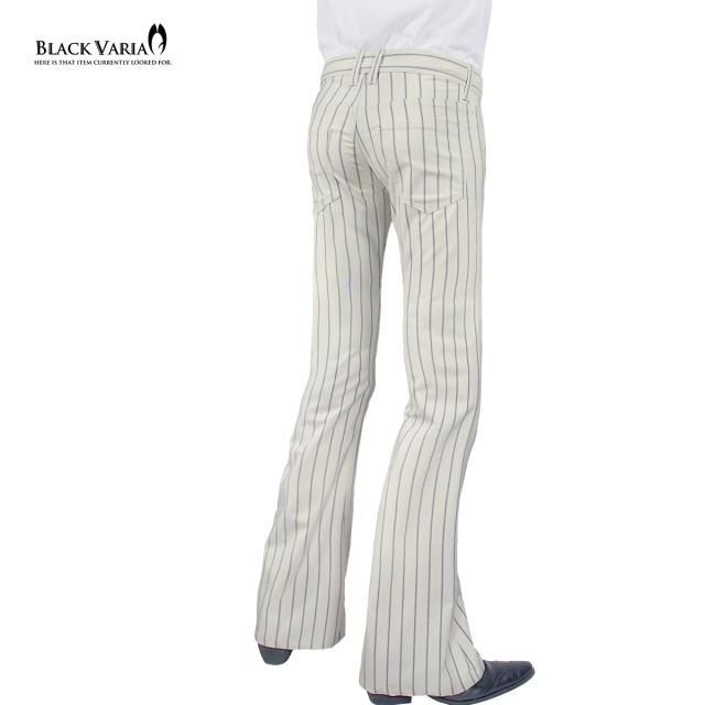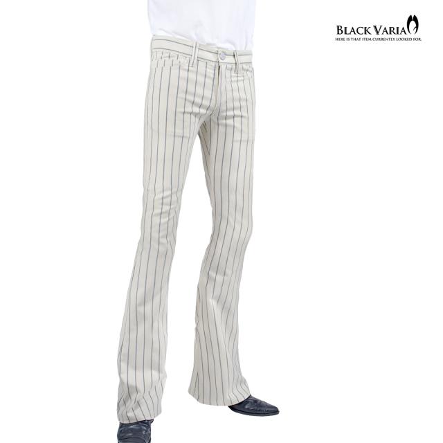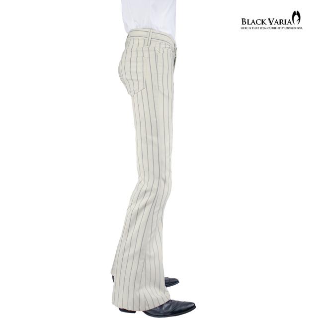 ベルボトムパンツ ストライプ柄 ブーツカット メンズ フレア ストレッチ ローライズ ボトムス パンタロンアイボリー白グレー灰) 232103