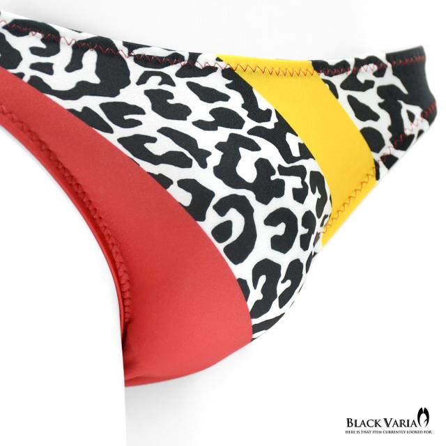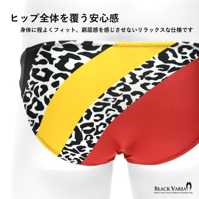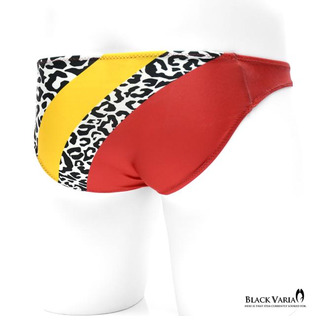 フルバック 豹柄 レオパード ヒョウ柄 アニマル柄 下着 ビキニ パンツ メンズ(レッド赤イエロー黄色) tc021