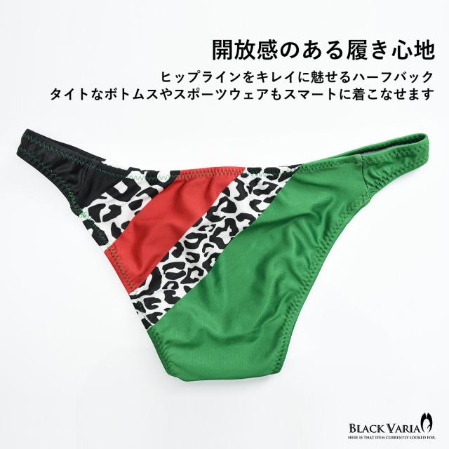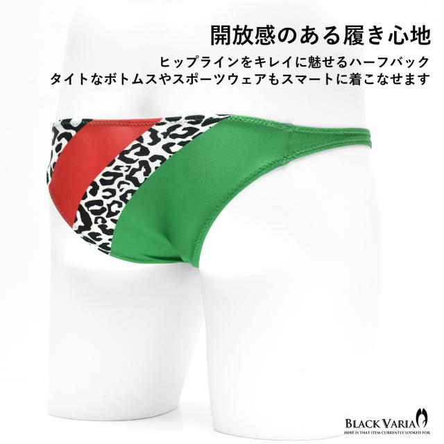 ハーフバック 豹柄 レオパード ヒョウ柄 アニマル柄 下着 ビキニ パンツ メンズ(グリーン緑レッド赤) tc020