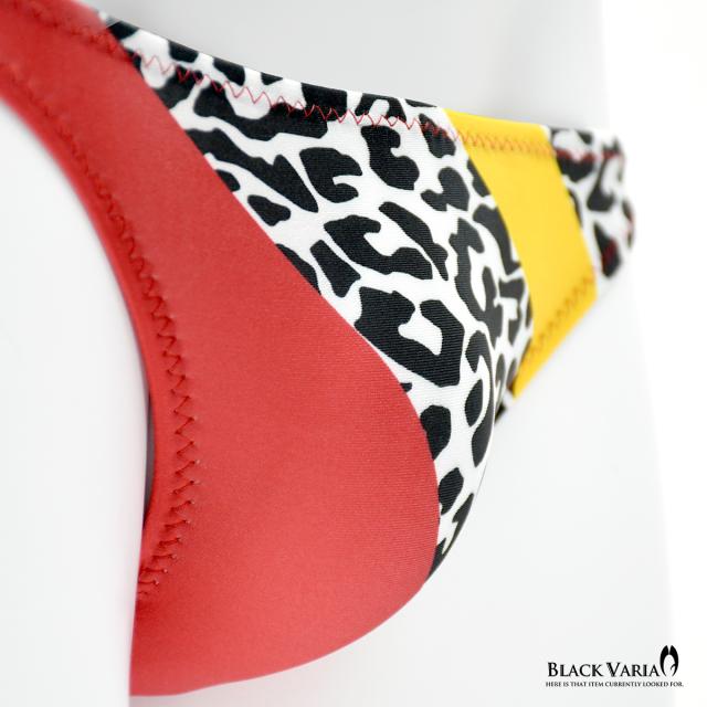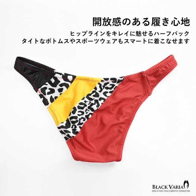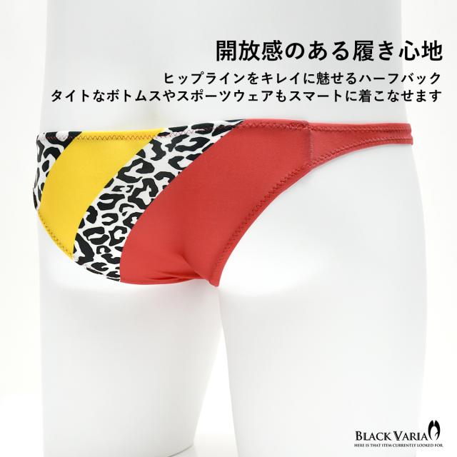 ハーフバック 豹柄 レオパード ヒョウ柄 アニマル柄 下着 ビキニ パンツ メンズ(レッド赤イエロー黄色) tc020